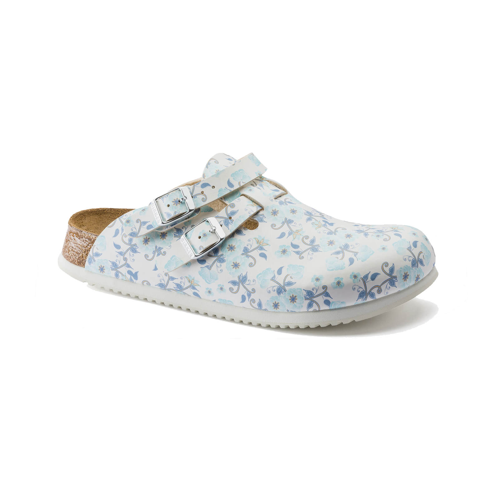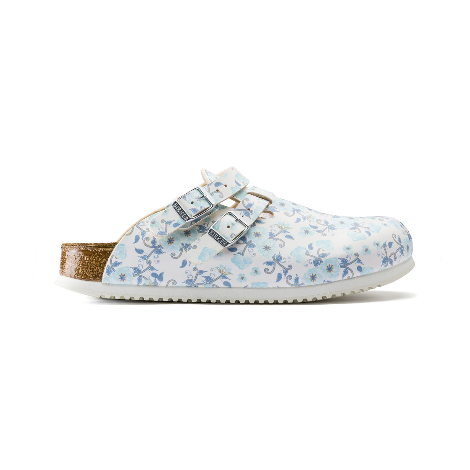 Der Kay SL Flowers bietet alle Vorteile der BIRKENSTOCK Klassiker Tokio & Boston kombiniert in einem Modell. Der obere Ristriemen kann bei Bedarf nach hinten umgeklappt werden und sorgt dann als Fersenriemen für zusätzlichen Halt. Die Superlaufsohle ist rutschhemmend, rollt ideal ab und ist zudem öl- und fettbeständig. Ihre Zwischensohle aus EVA dämpft jeden Schritt. Vor allen im medizinischen Bereich ist dieses hohe Maß an Flexibilität und Trittsicherheit gefragt. Alle Superlaufsohlen-Modelle werden nach den Vorgaben der EN ISO 20347:2012 hinsichtlich der Rutschhemmung getestet.