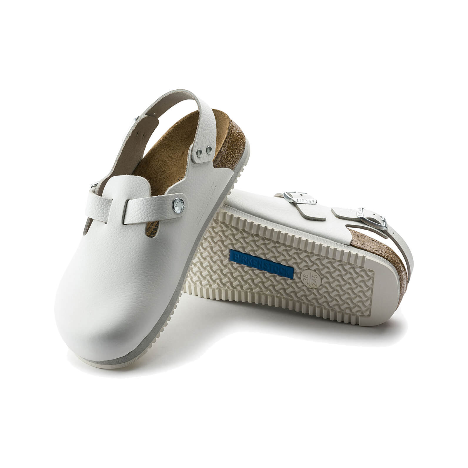 Mit dem Tokio SL hat Birkenstock den passenden Clog für alle Berufe entwickelt, die große Ausdauer von Träger/innen und Füßen fordern. Seine Superlaufsohle rollt ideal ab und wirkt rutschhemmend. Eine Zwischensohle aus EVA dämpft jeden Schritt. Das spezielle Gummiprofil sorgt für spürbare Trittsicherheit. Dieser stabile Halt wird durch den verstellbaren Fersenriemen verstärkt. Das schätzen Berufstätige in Medizin und Küche genauso wie Servicekräfte, die oft über viele Stunden auf den Beinen sind. Die Sohle des Tokio SL ist nach den Vorgaben der EN ISO 20347:2012 hinsichtlich der Rutschhemmung getestet.