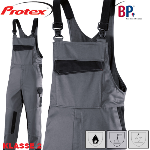 Arbeitskleidung für Schweisser, auch zum Schweissen von Aluminium geeignet, sowie moderne, flammhemmende, antistatische Schutzkleidung Klasse 2 von BP WELDERS PROTECTION wie 2601 Schweisserhose Latzhose 430g nach EN 11611, EN 11612 und EN 1149-5. Hochwertige, moderne Schweisserkleidung für Schweisser garantiert höchsten Tragekomfort durch Fasermischung mit Baumwolle.