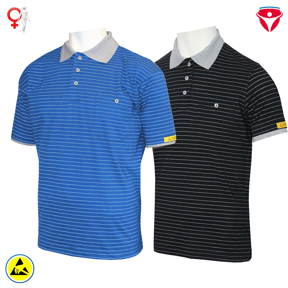 Die Poloshirts und T-Shirts aus CONDUCTEX®-Baumwolle sind sehr angenhehm zu tragen, weil sie nicht gewebt, sondern gestrickt sind. Das verschafft eine hohe Bewegungsfreiheit. Gleichzeitig verfügt CONDUCTEX® dank 5 % Carbon über eine hohe Ableitfähigkeit. Erhältlich in vielen Farbvarianten und als tailliert geschnittenes Damenpolohemd.