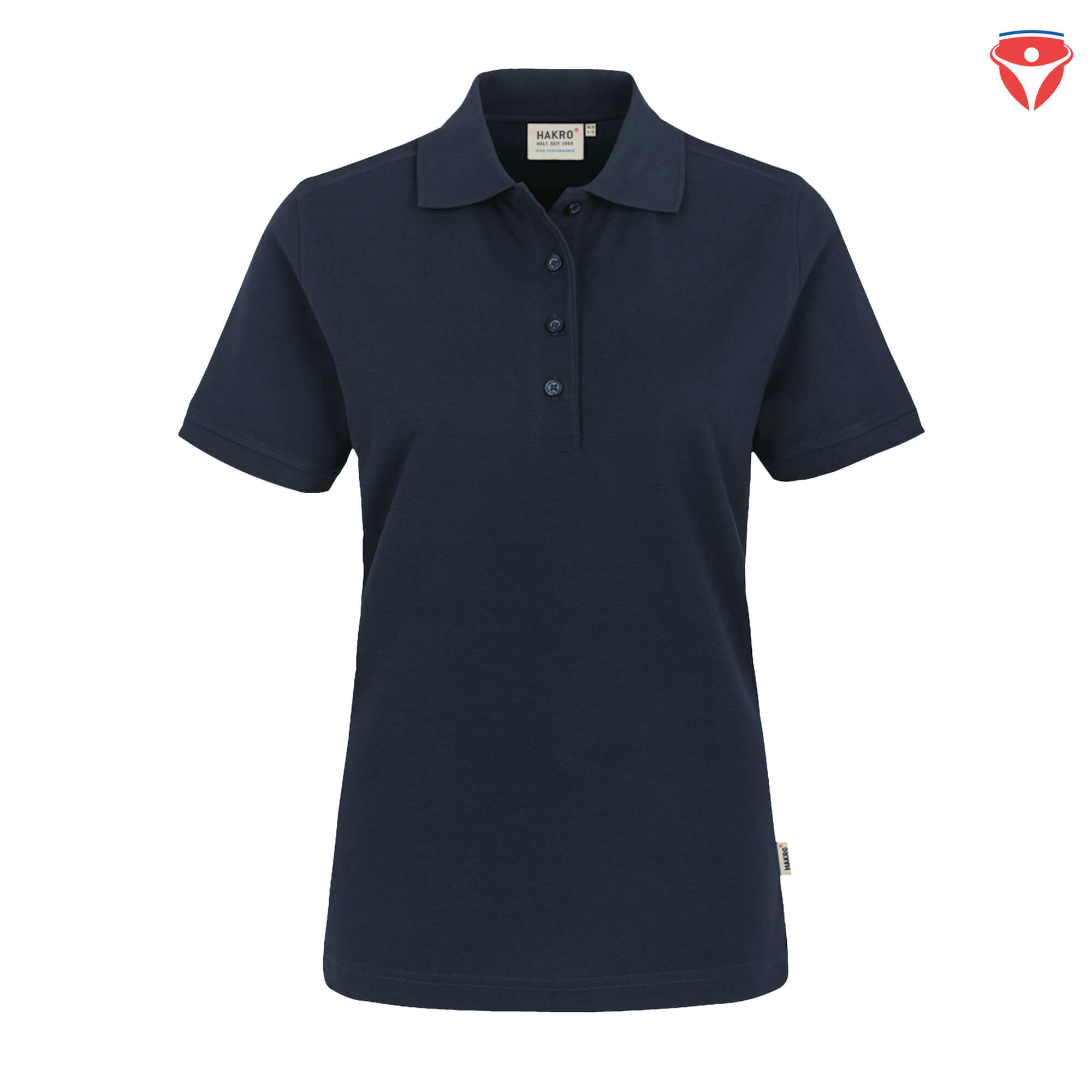 Extrem strapazierfähiges, kochfestes, chlorechtes, farb- und formbeständiges Poloshirt für Damen, mit hochwertig verarbeiteter, modisch schmaler 4-Loch-Knopfleiste mit extra haltbar angenähten, bruchsicheren Knöpfen, Ton-in-Ton mit gelasertem HAKRO Schriftzug. Mit Ersatzknopf, Nackenband, doppelt geriegelten Seitenschlitzen und gewebeverstärkten Schulterpartien. Angenähtem Leasingkoller zur Kennzeichnung in der gewerblichen Wäscherei und Aufhängebänder im Saum. Hergestellt aus weichem, besonders pflegeleichtem und funktionellem Piqué aus dem HAKRO Performance-Materialmix Mikralinar® und einer speziellen Einfärbung aus wasserunlöslichem Küpenfarbstoff. Gewebtes HAKRO Necklabel aus hochwertigem Kettsatin mit ultraschallgeschnittenen Bandkanten für höchsten Tragekomfort und gewebtes HAKRO Flaglabel in der linken Seitennaht.