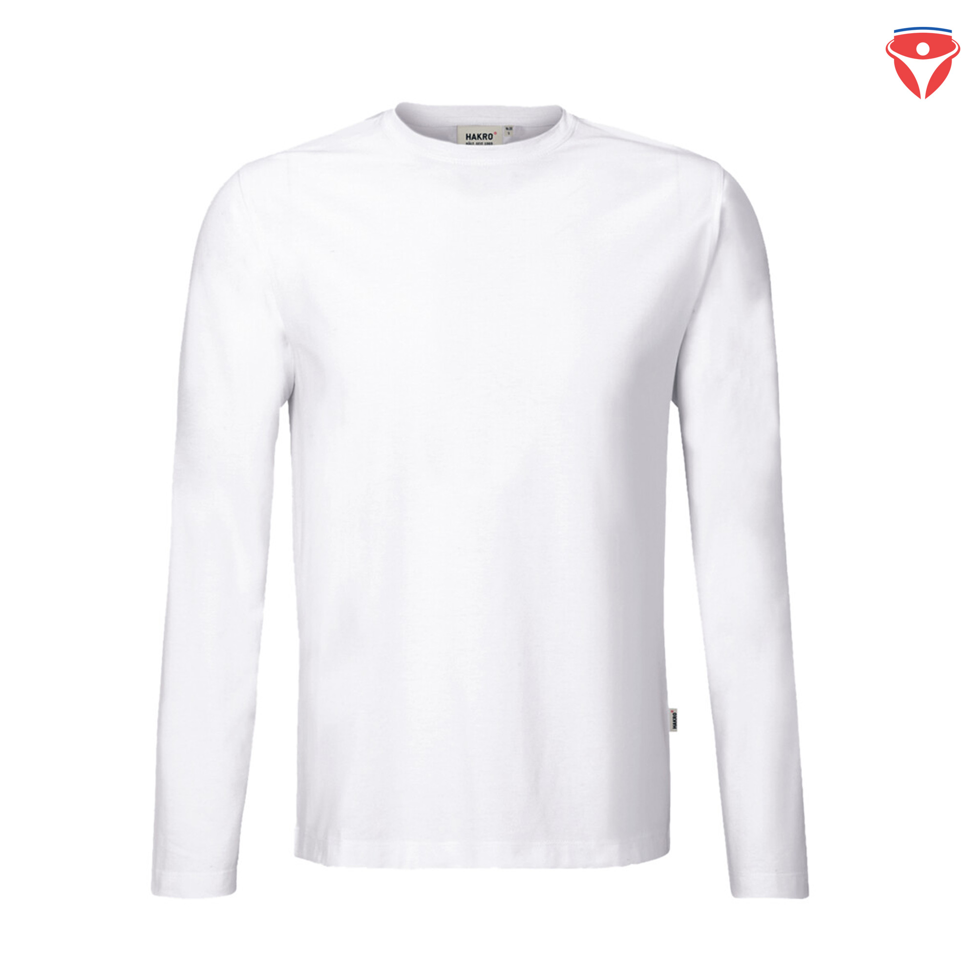 Besonders strapazierfähiges Langarmshirt mit rundem Halsausschnitt, geripptem Halsbündchen und Nackenband. Leasingkoller zur einfachen Kennzeichnung in der gewerblichen Wäscherei und Aufhängebänder im Saum. Hergestellt aus schwerem, besonders pflegeleichtem und funktionellem Single-Jersey aus dem HAKRO Performance-Materialmix Mikralinar®. Gewebtes HAKRO Necklabel aus hochwertigem Kettsatin mit weichen, ultraschallgeschnittenen Bandkanten für höchsten Tragekomfort und gewebtes HAKRO Flaglabel an der linken Seitennaht.