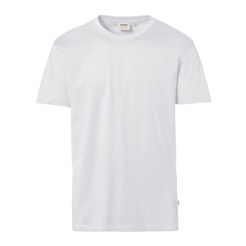 Klassisches T-Shirt mit rundem Halsausschnitt, LYCRA®-verstärktem Bündchen und Nackenband. Hergestellt aus feinem, mittelschwerem Single-Jersey aus langstapeliger, gekämmter und ringgesponnener Baumwolle. Gewebtes HAKRO-Necklabel aus hochwertigem Kettsatin mit weichen, ultraschallgeschnittenen Bandkanten für höchsten Tragekomfort und gewebtes HAKRO-Flaglabel an der linken Seitennaht.