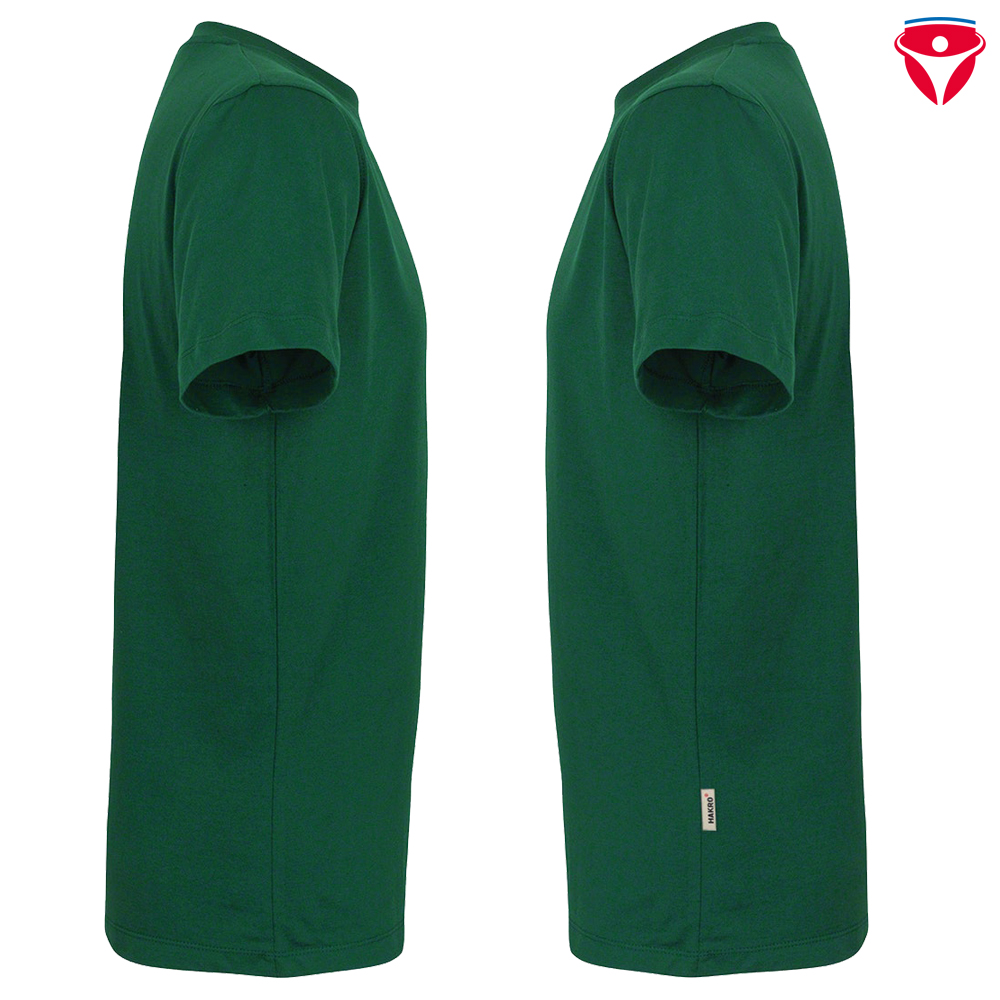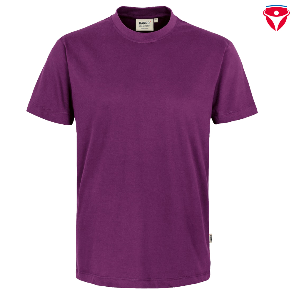 Klassisches T-Shirt mit rundem Halsausschnitt, LYCRA®-verstärktem Bündchen und Nackenband. Hergestellt aus feinem, mittelschwerem Single-Jersey aus langstapeliger, gekämmter und ringgesponnener Baumwolle. Gewebtes HAKRO-Necklabel aus hochwertigem Kettsatin mit weichen, ultraschallgeschnittenen Bandkanten für höchsten Tragekomfort und gewebtes HAKRO-Flaglabel an der linken Seitennaht.