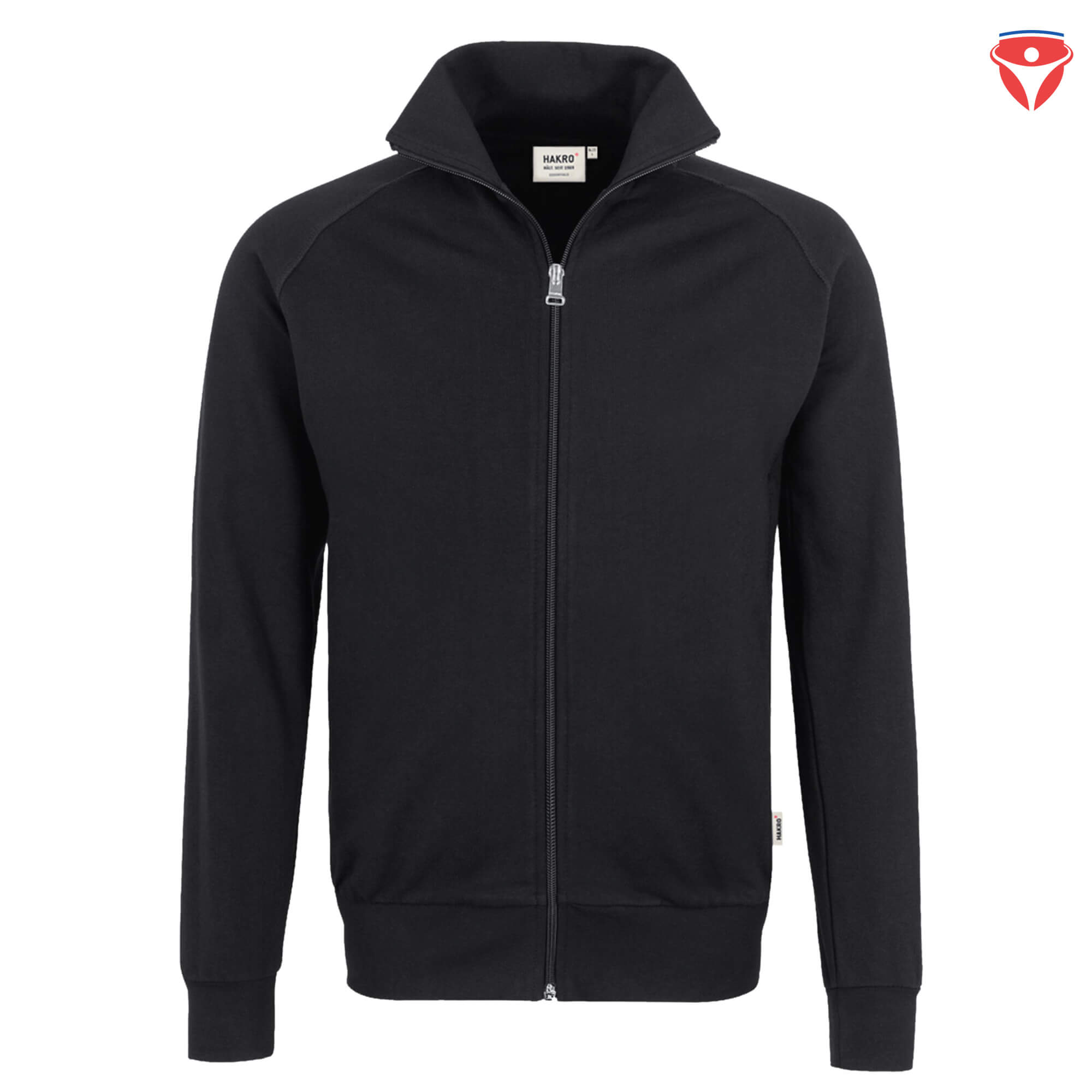 Sportive Sweatjacke im College-Stil, mit hochwertigem Frontreißverschluss von YKK®, formstabilen Bündchen mit LYCRA®-Anteil, Raglanärmeln, Teilungsnähten mit dekorativer Flatlock-Steppung, nicht angerauter Innenseite (French-Terry), Nackenband und zwei praktischen, seitlichen Einschubtaschen. Hergestellt aus pflegeleichter Baumwolle-Polyester-Mischung für höchste Ansprüche. Gewebtes HAKRO Necklabel aus hochwertigem Kettsatin mit weichen, ultraschallgeschnittenen Bandkanten für höchsten Tragekomfort und gewebtes HAKRO Flaglabel an der linken Seitennaht.