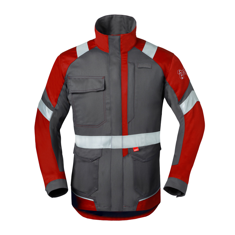 Neben der modernen Optik überzeugt die Jacke auch durch Sicherheitsmerkmale wie Reflexstreifen oder nach Aussen sichtbare Gefahrenpiktogramme.
