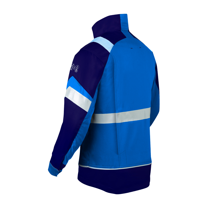 Neben der modernen Optik überzeugt die Jacke auch durch Sicherheitsmerkmale wie Reflexstreifen oder nach Aussen sichtbare Gefahrenpiktogramme.