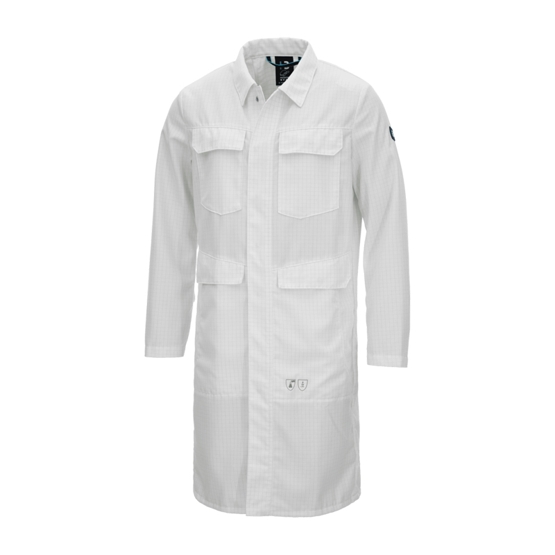Der Chemikalienschutz Mantel HB ChemProtect bietet nicht nur Schutz vor Chemikalien des Typs 6 sondern ist auch dauerhaft antistatisch. Das Gewebe des Herrenmantels besteht zu 99% aus recyceltem Material.