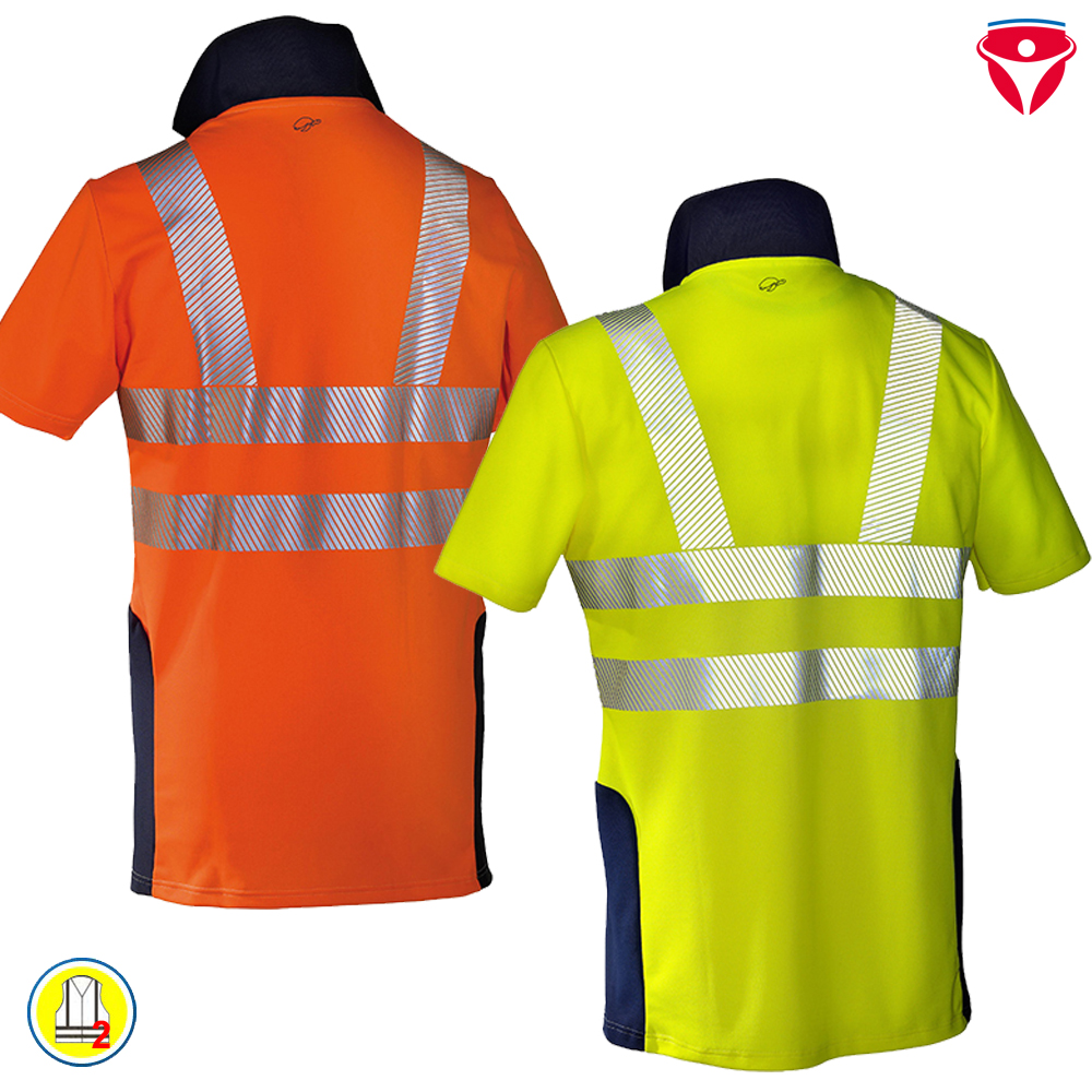 Ausstattung des HB Hi Vision Warnschutz PoloShirt nach EN 20471 Klasse 2 | hochwertige Warnschutzkleidung: