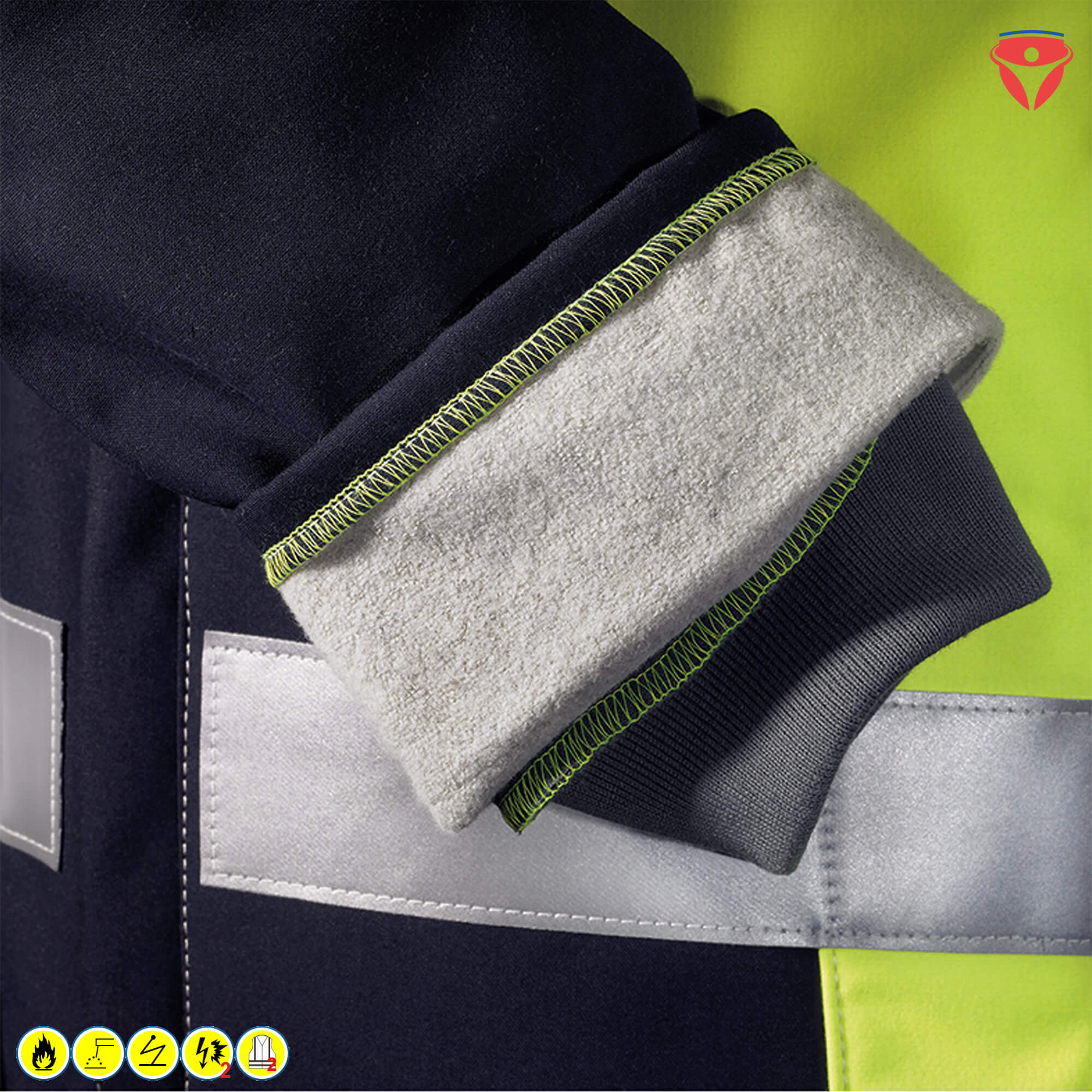 Die Hi-Vision Warnschutz Softshell Jacke FR von HB Schutzkleidung besitzt Störlichtbogenschutz Klasse 2, ist flammhemmend und antistatisch. Die atmungsaktive Sofltshell Warnschutzjacke kann als stand-alone oder unter Parka getragen werden.