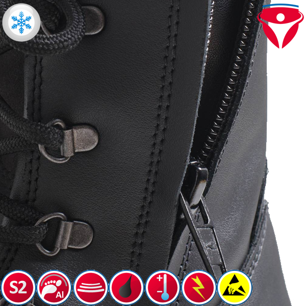 | Eigenschaften Schuhe: | ESD Kennzeichnung, HRO hitzebeständige Laufsohle, Nageldurchtrittschutz, BGR 191 tauglich, Kälteschutz |