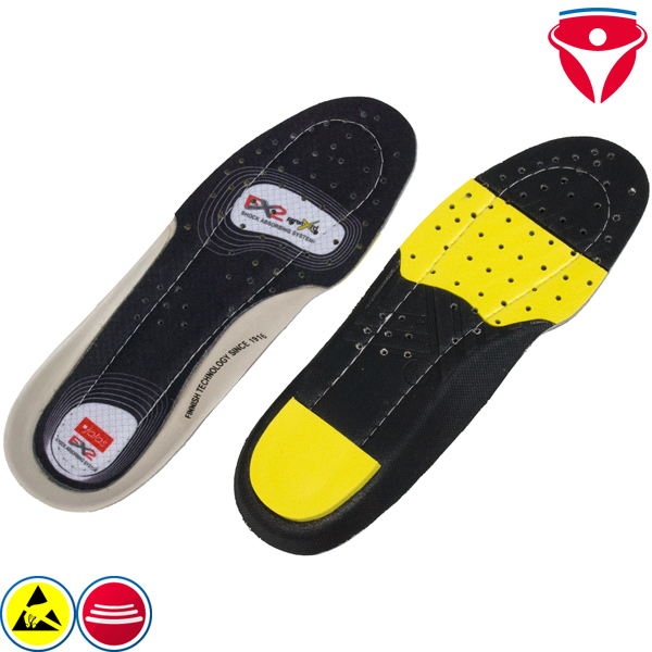 JALAS FX2 ist ein völlig neuer Typ von Einlegesohle mit extrem hoher Stoßdämpfung. Das hoch technologische Ventilationssystem läßt den Schuh atmen. JALAS FX2 Dualaction ist ein völlig neuer Typ von Sohle, die der Ferse und dem Vorderfuß eine besonders gute Stoßdämpfung bietet. Dadurch verringert sich die Belastung und Ermüdung der Fersen und des Vorderfußes sehr effektiv.