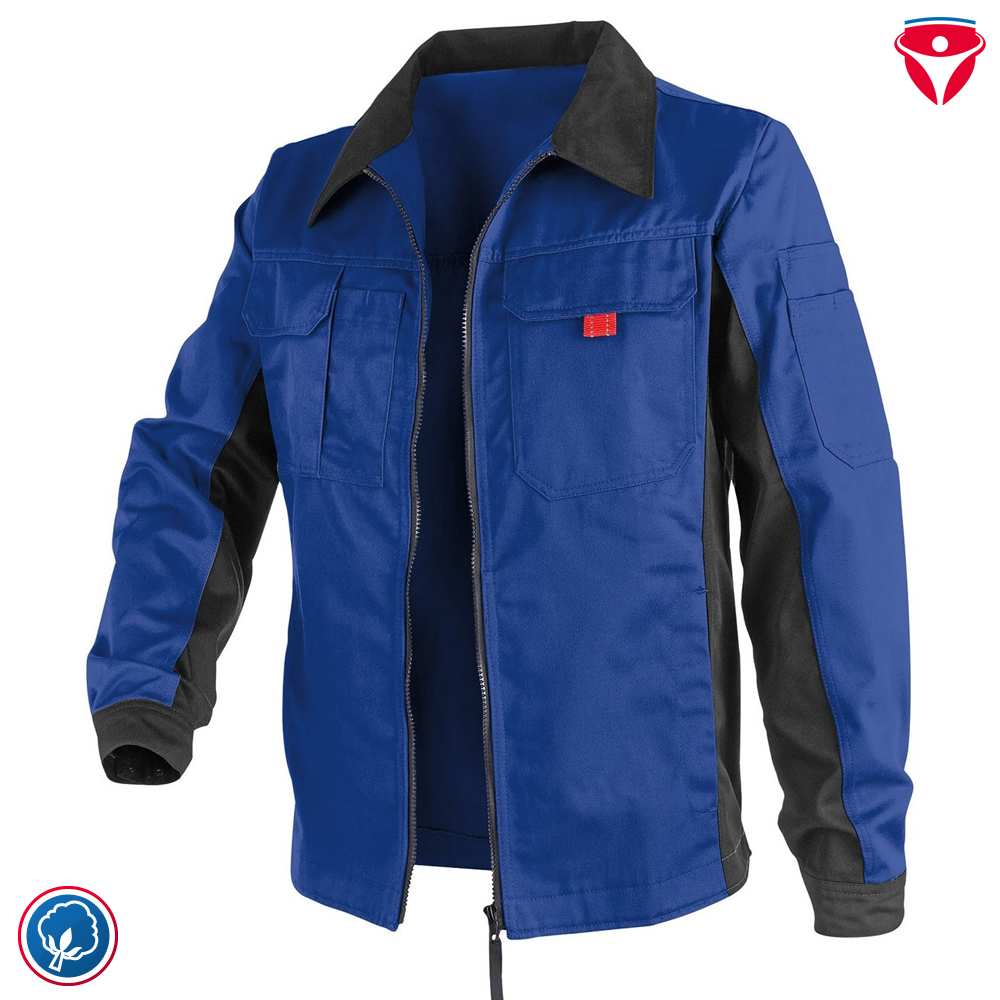 Moderne und hochwertige Arbeitskleidung wie die Kübler Inno Plus Dress Jacke aus strapazierfähigen Mischgewebe. Die schmutzabweisende und wasserabweisende Arbeitsjacke ist modern geschnitten und besitzt eine Smartphonetasche.