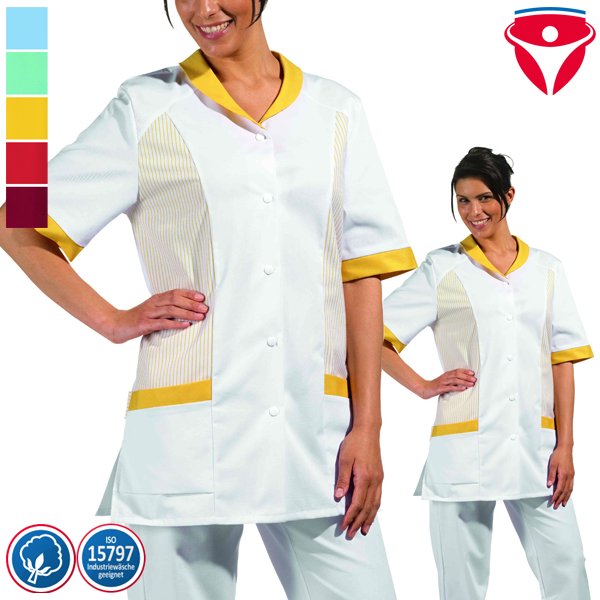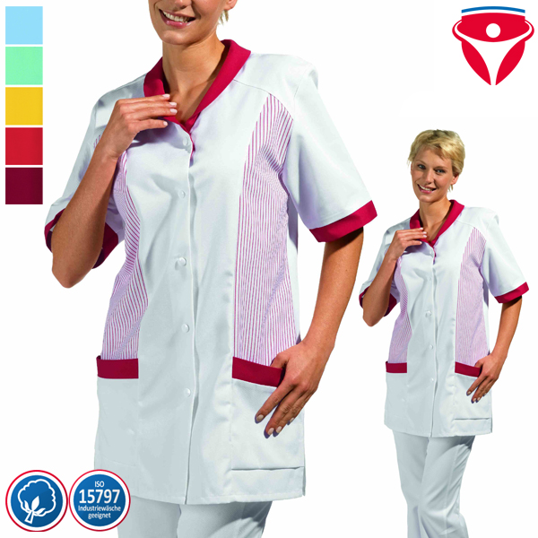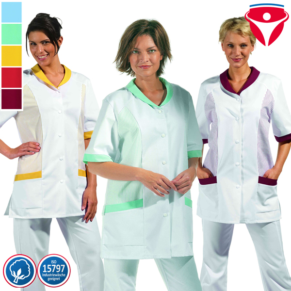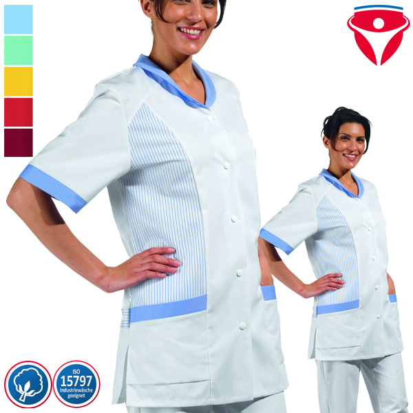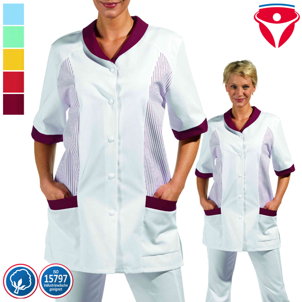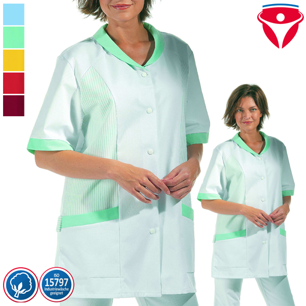 Ausstattung des modernen Leiber Hosenkasacks 1/2 Arm 08/800 für Damen mit Schlagkragen und Druckknopfleiste:
