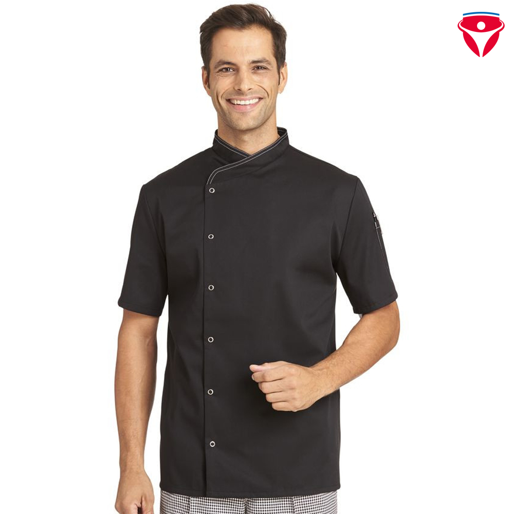 - Günstige Kochjacke mit Druckknopleiste und Kontraststeppung