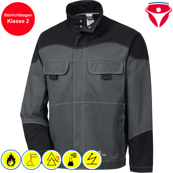 - High-End-Störlichtbogenschutz Klasse 2 (7 kA) im Bereich Vorderteil und Ärmel