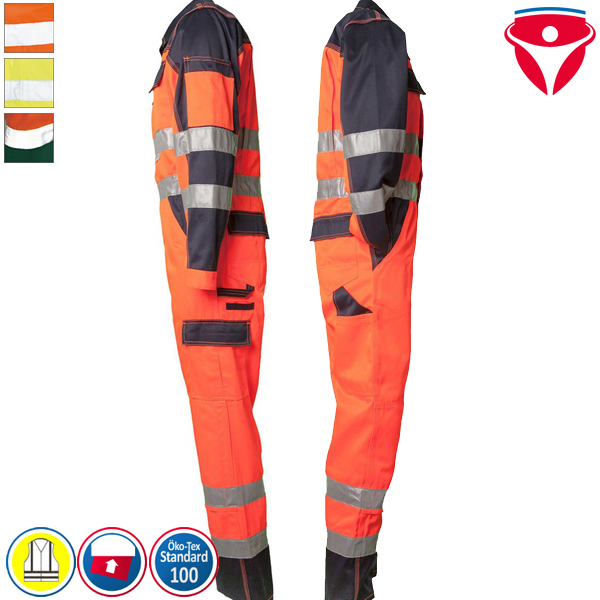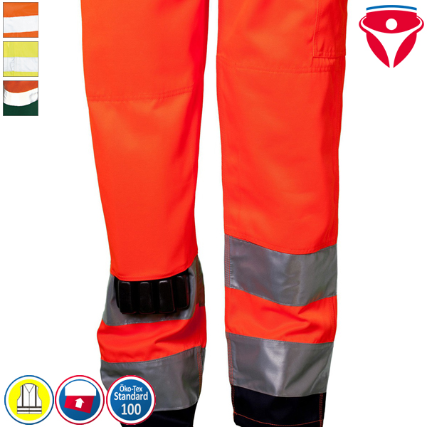 Planam Warnschutz Rallyekombi 2036 - zweifarbiger Warnschutzkombi mit Kniepolstertaschen nach EN 20471