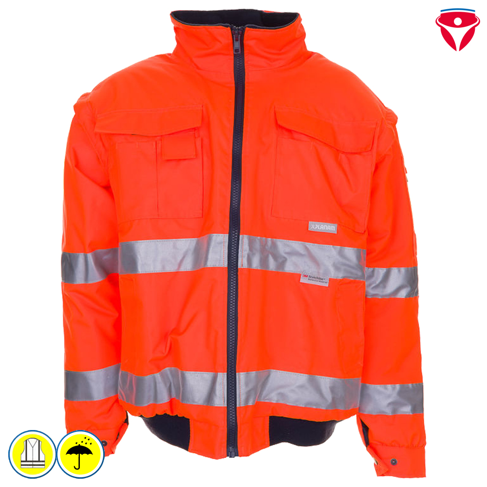PLANAM wasserdichte Warnschutzkleidung Pilotenjacke mit abnehmbaren Ärmeln nach EN 20471 und EN 343