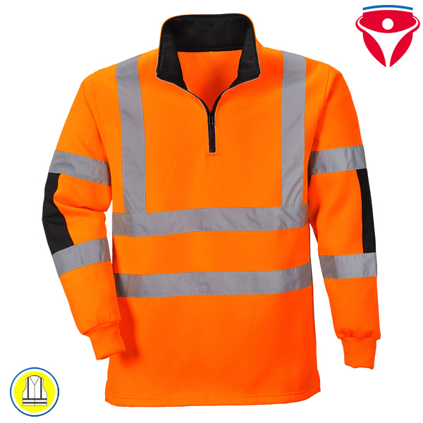 PortWest B308 Warnschutz Xenon Rugby Shirt nach EN 20471 | Sweat-Shirt mit Zip aus gebürstetem Gewebe