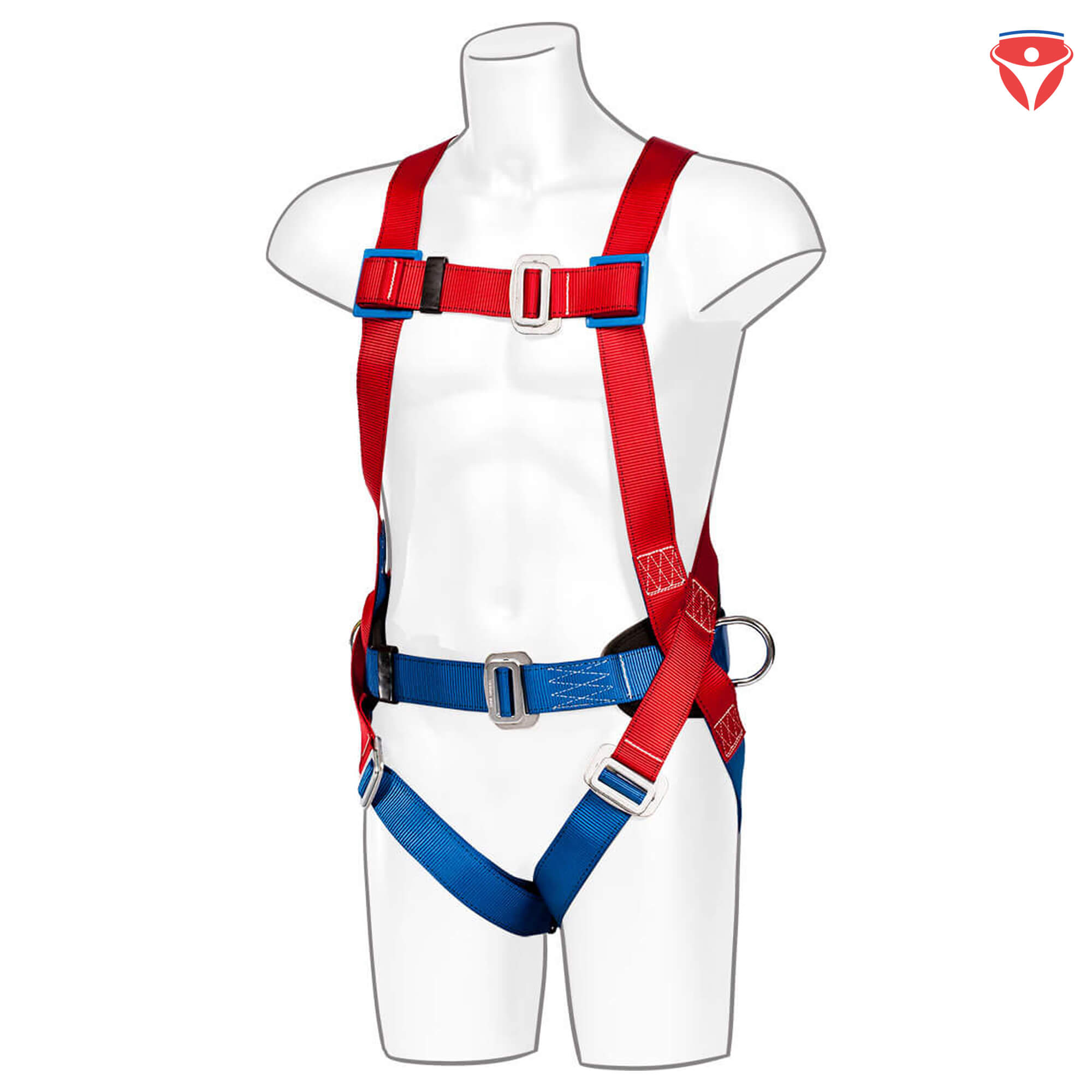Ergonomischer Auffanggurt FP14 mit einem beweglichen Rücken D-Ring. Ausgestattet mit atmungsaktivem, vorgeformtem Rückenpolster, zwei seitlichen D-Ringen und flache Verschlüsse, die einfach zu handhaben sind. Aus Polyestergewebe-Gurtband hergestellt. Die verstellbaren Taillen-, Brust- und Beingurte bieten exzellente Passform und Komfort.