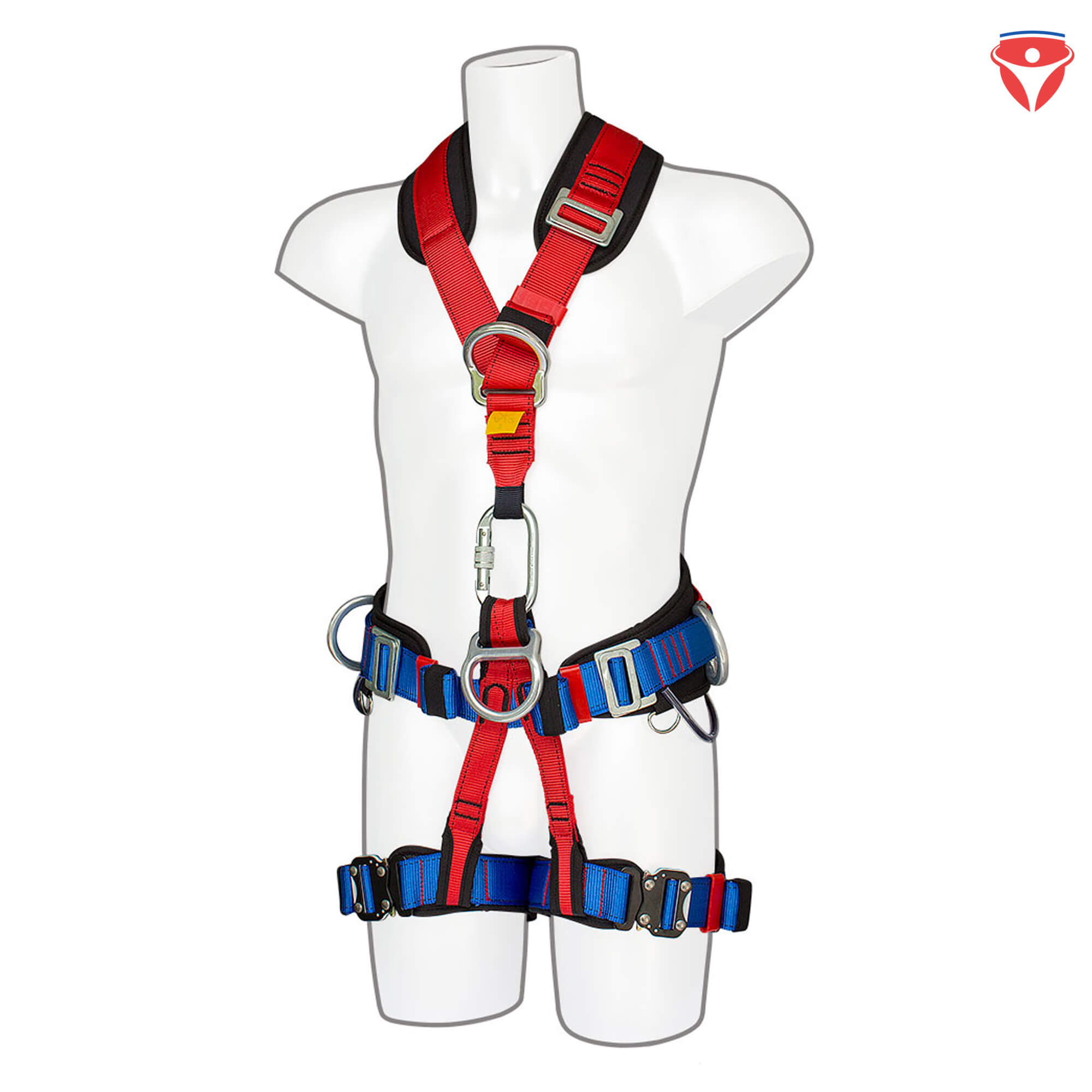 Der ergonomisch gestaltete FP19 4-Punkt-Auffangurt Komfort Plus wurde aus leichtem Aluminium gefertigt und optimiert Festigkeit und Haltbarkeit. Es bietet 4 Befestigungspunkte, einen hinteren D-Ring, zwei seitliche D-Ringe und einen oberen und unteren D-Ring. Schnellverschlüsse für einfaches Anlegen.