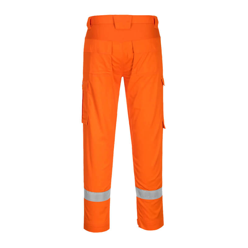 Moderne PortWest FR401 MultiNorm Hose aus leichtem FR-Baumwollgewebe mit speziellen Stretcheinsätzen, die eine erhöhte Bewegungsfreiheit in allen Arbeitspositionen ermöglichen.
