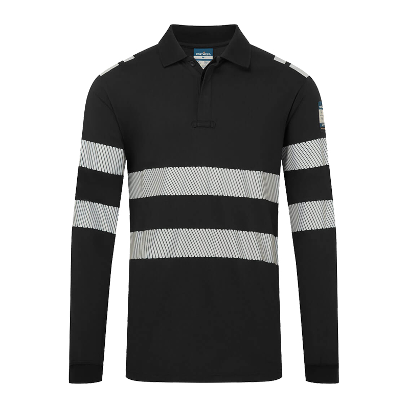 PortWest FR733 Langarm Polo – flammhemmend, antistatisch, mit Reflexstreifen