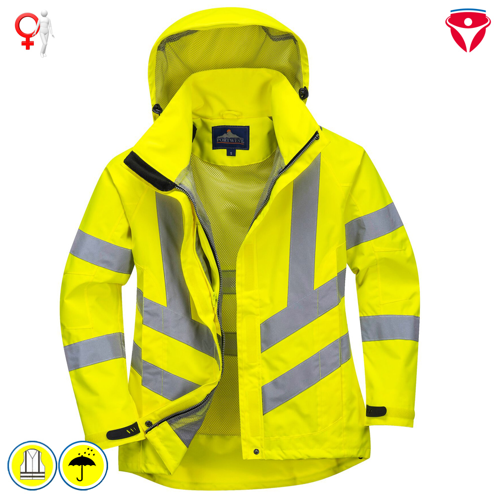 PortWest LW70 günstige, wasserdichte Frauen - Warnwetterschutzjacke nach EN 20471
