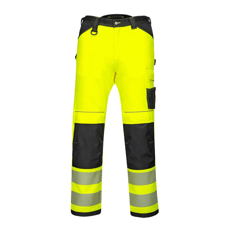 Innovative leichte PortWest PW303 Warnschutz- Stretch-Hose mit leistungsstarkem Zwei-Wege-Stretch-Gewebe für maximale Bewegungsfreiheit bei der Arbeit.
