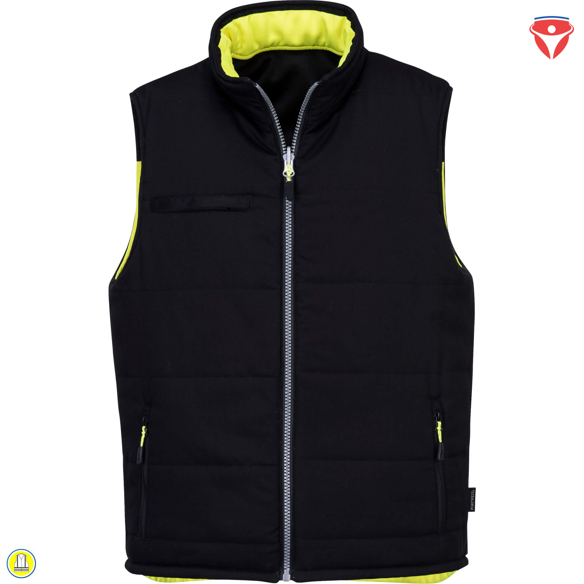 Ausstattung der wendbaren Warnschutz Weste PW374 mit Steppfutter von PortWest: