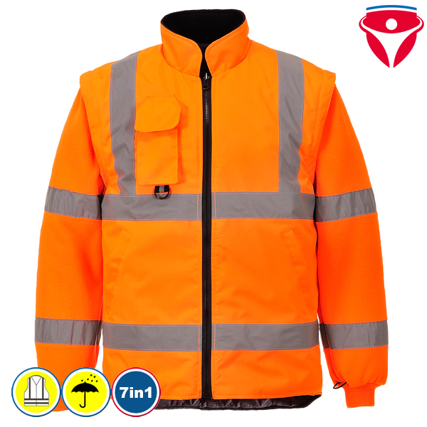 PortWest RT27 Warnschutz Traffic-Jacke 7 in 1 Warnschutzparka