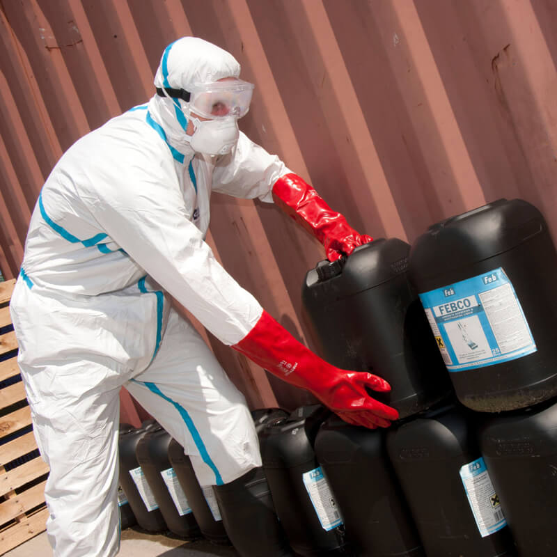 Wenig fusselnd, mit verschweißten Nähten. Eine extrem wirkungsvolle Barriere gegen Chemikalien.