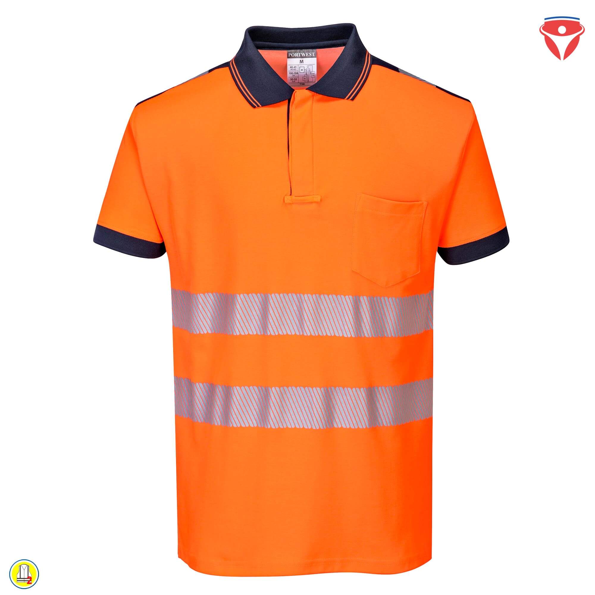 PortWest Warnschutz Polo Shirt kurzarm T180 mit hohem Baumwoll-Anteil
