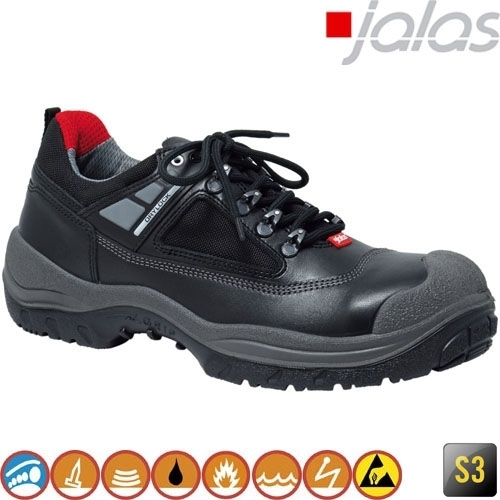 Die Jalas Sicherheitsschuhe haben eine Lasche über dem Spann und ist für allerhöchsten Komfort an den Schaftkanten mit „memory foam“ gepolstert. Die verschleißfeste Sohle ist aus Nitrilgummi und verträgt bis zu 300° Grad Hitze, zudem bietet sie einen sehr guten Halt auf rutschigen, nassen Böden.