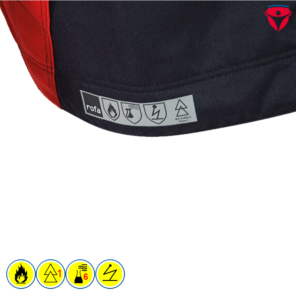 | Schutz vor: | Hitze, Flammen, Antistatik, Chemikalien, Störlichtbogen 1 | 4 kA |