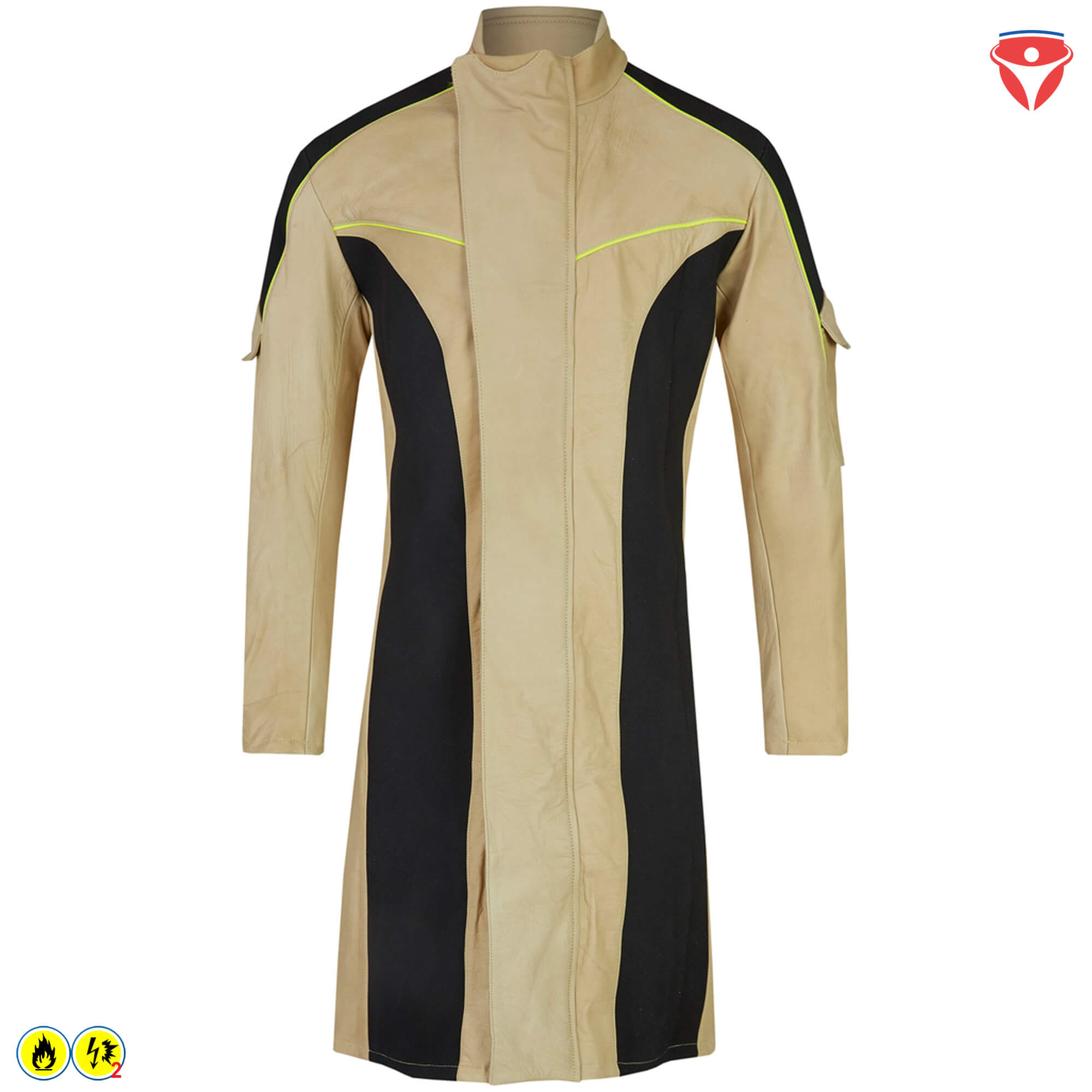 Die Schutzmantel bietet Schutz vor Störlichtbogen Klasse 2 und sorgt für höchsten Tragekomfort. Der Materialmix aus Rindvollleder und Kevlarstrick sorgt für lange Standzeiten.