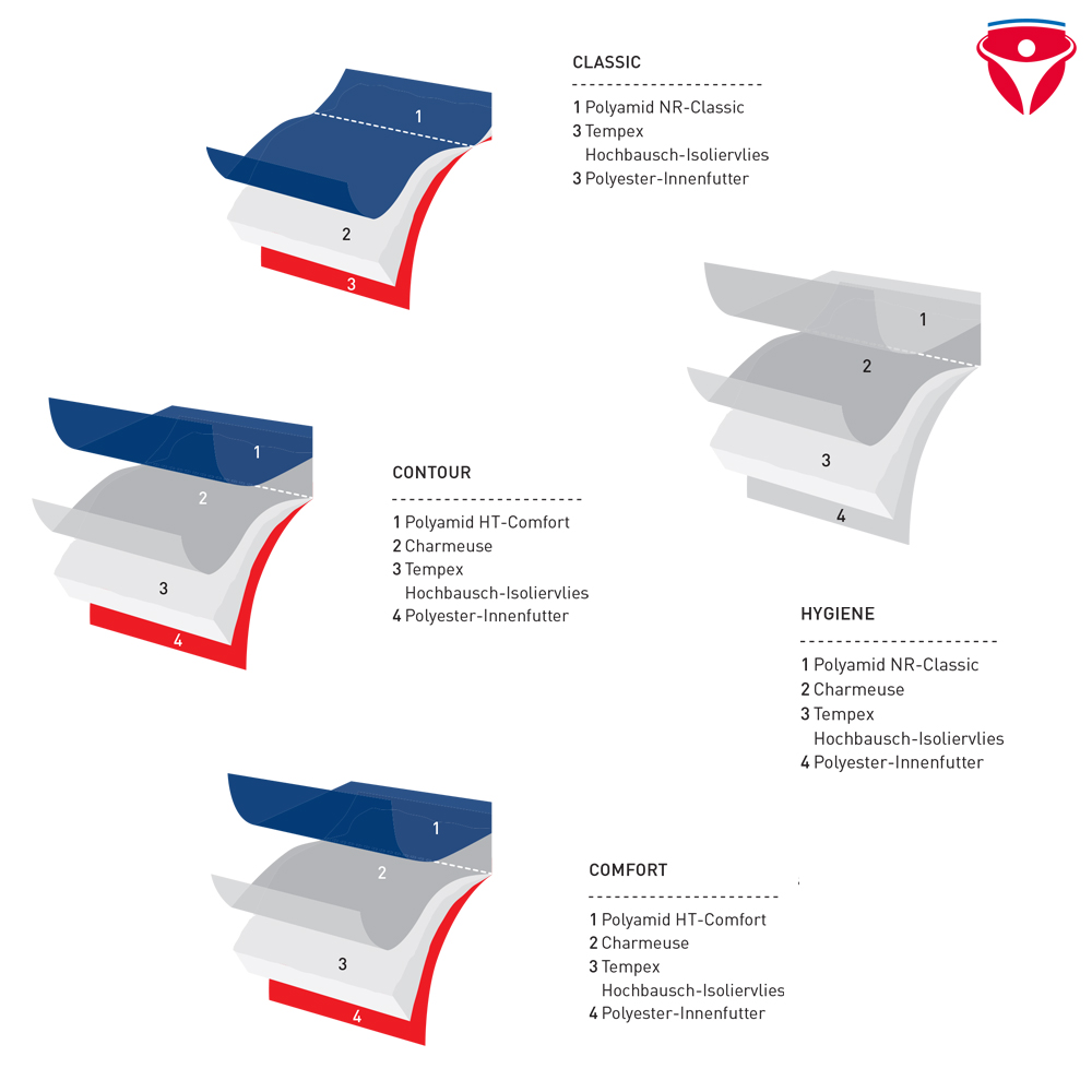 - Brusttasche links mit Reißverschluss (nur Modell Herren)